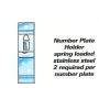Number plate clip, sprung, stainless steel. For oblong plates, overall length 120mm.