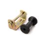 3.5" rubber keel roller and bracket set. 90mm. long with 11mm. bore. Corrosion resistant finish.
