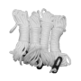High strength, braided white guylines, every four metres in length. All wound on a dolly, with a three-hole tightener & peg loop. An essential camping and caravanning accessory.